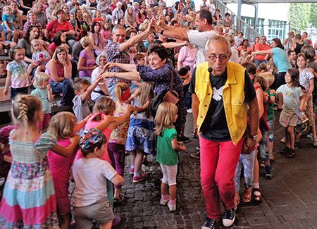 | Die Leinen los und auf geht´s in eine bunte Kindermusik Show. Gefühle spielen dann eine große Rolle und wenn Heiner seine Melodika nimmt, heißt es gleich Ich freu mich. Mal schiebt sich eine Eisenbahn Polonaise durch die Menge, oder Groß und Klein tanzen gemeinsam zum Lied Mach dich locker! |